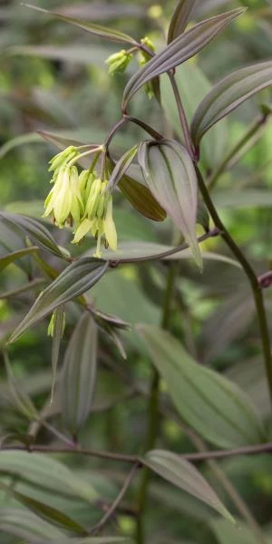 An elegant evergreen shade lover, its tall, upright, branching bamboo-like stems gently arch at the top, and bear creamy-green, fragrant, nodding bell flowers in spring. Ideal growing conditions for Disporum are partial shade and humus-rich free-draining soil.
